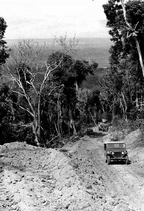 A letter from Ch. Sams in April 1968 mentioned that the 1st Air Cav was engaged in trying to open up a land route to Khe Sanh, which was the focus of U.S. Military operations following the Tet Offensive. Ch. Sams took this photo at around that time while he was stationed at An Khe.