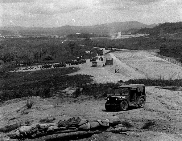 This "Division Chaplain" jeep was Ch. Sams' transportation to troops within 50 miles of An Khe. For calls further afield than that, he traveled by Huey. After the war, Ch. Sams received a commendation for logging over 100 hours in a helicopter to reach these troops.